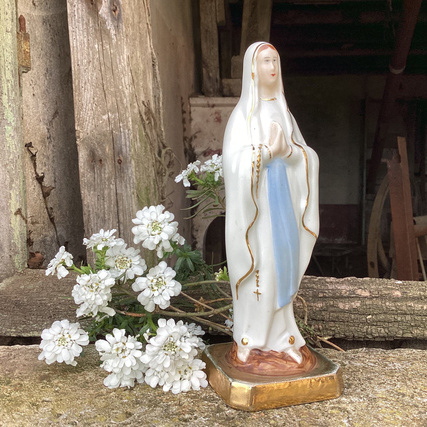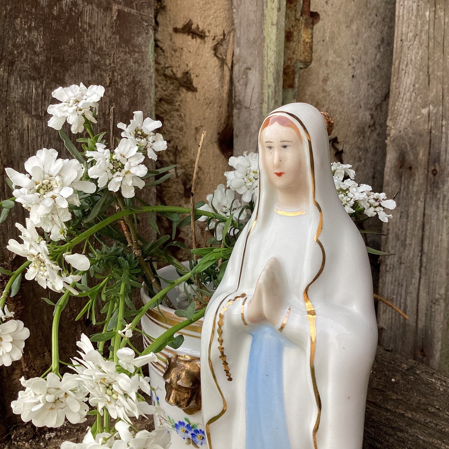 Add Virgin Mary Porcelain Satuette : Lourdes souvenir, a bottle for holy water to the cart