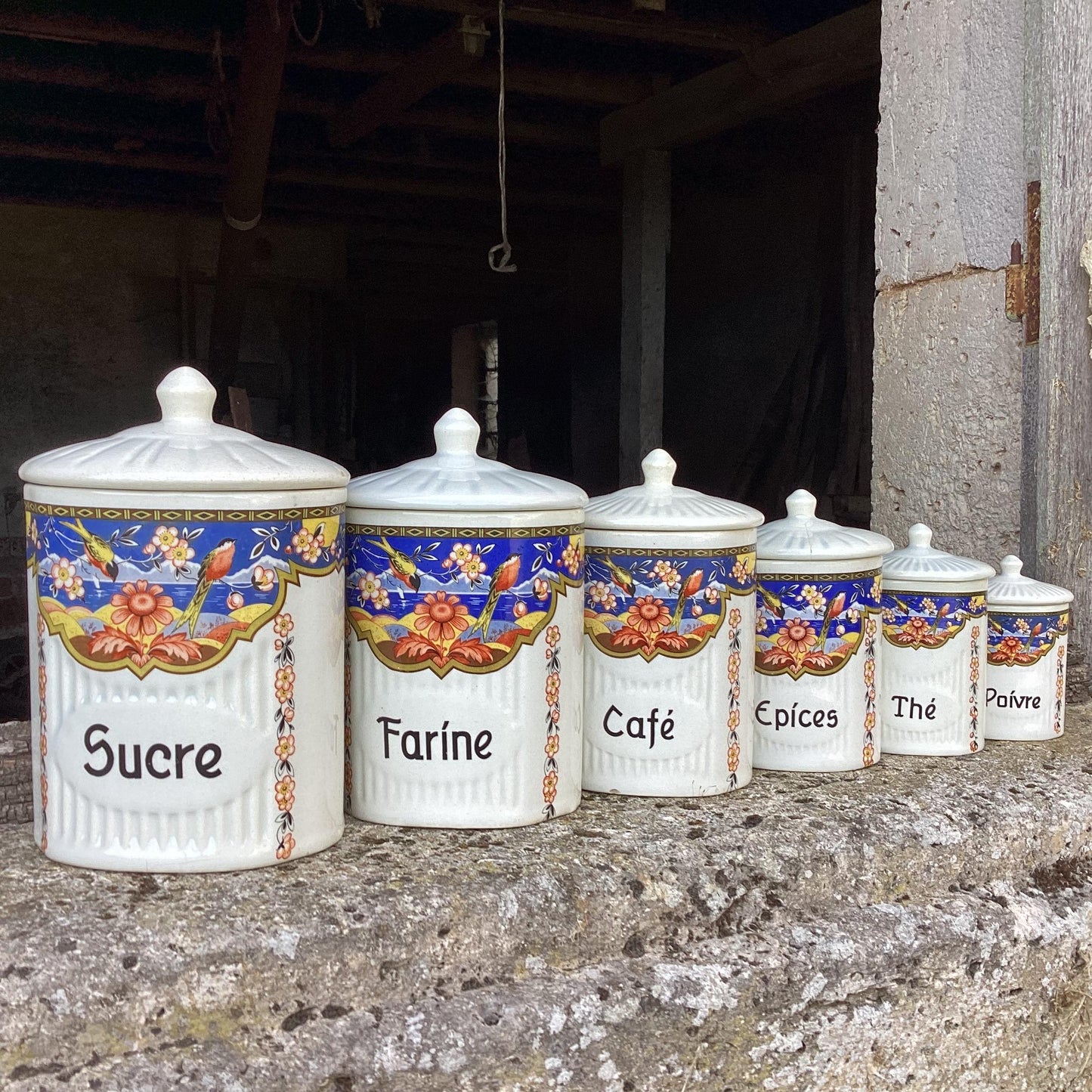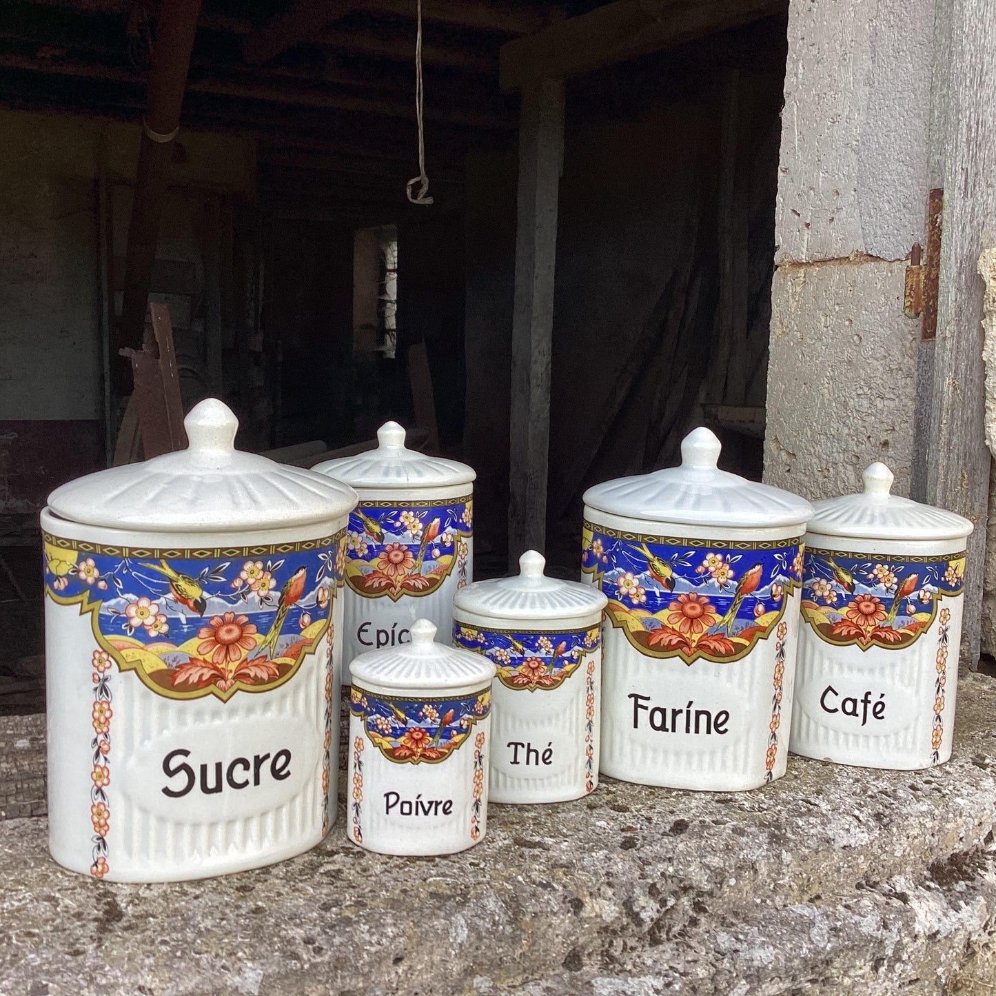 Add 6 French Vintage Storage Canisters : spice jars with lids, ceramic storage pots to the cart