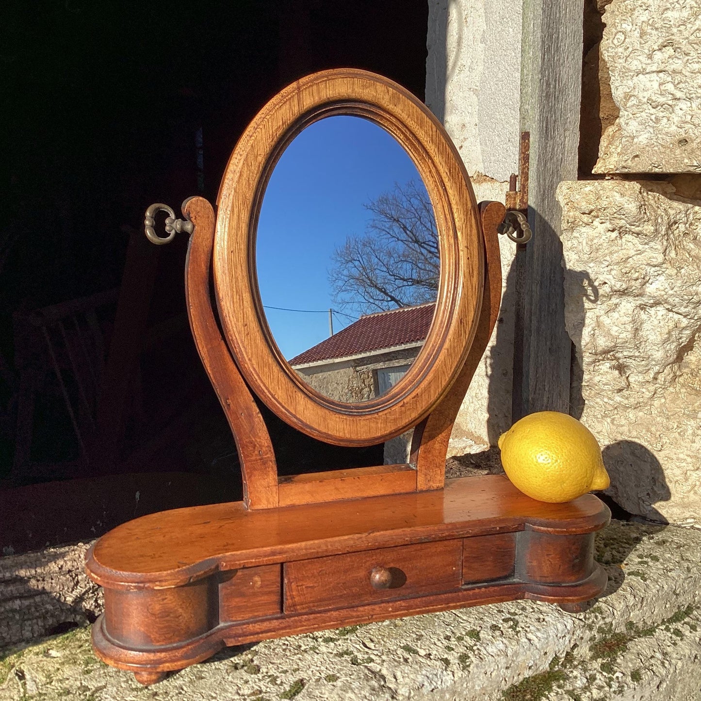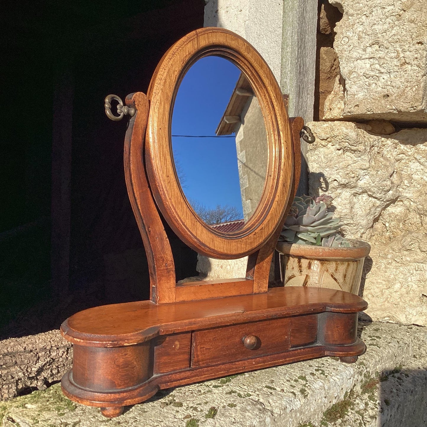 Add Antique Wood Table Top Mirror : framed mirror with drawer, small Psyché looking glass to the cart