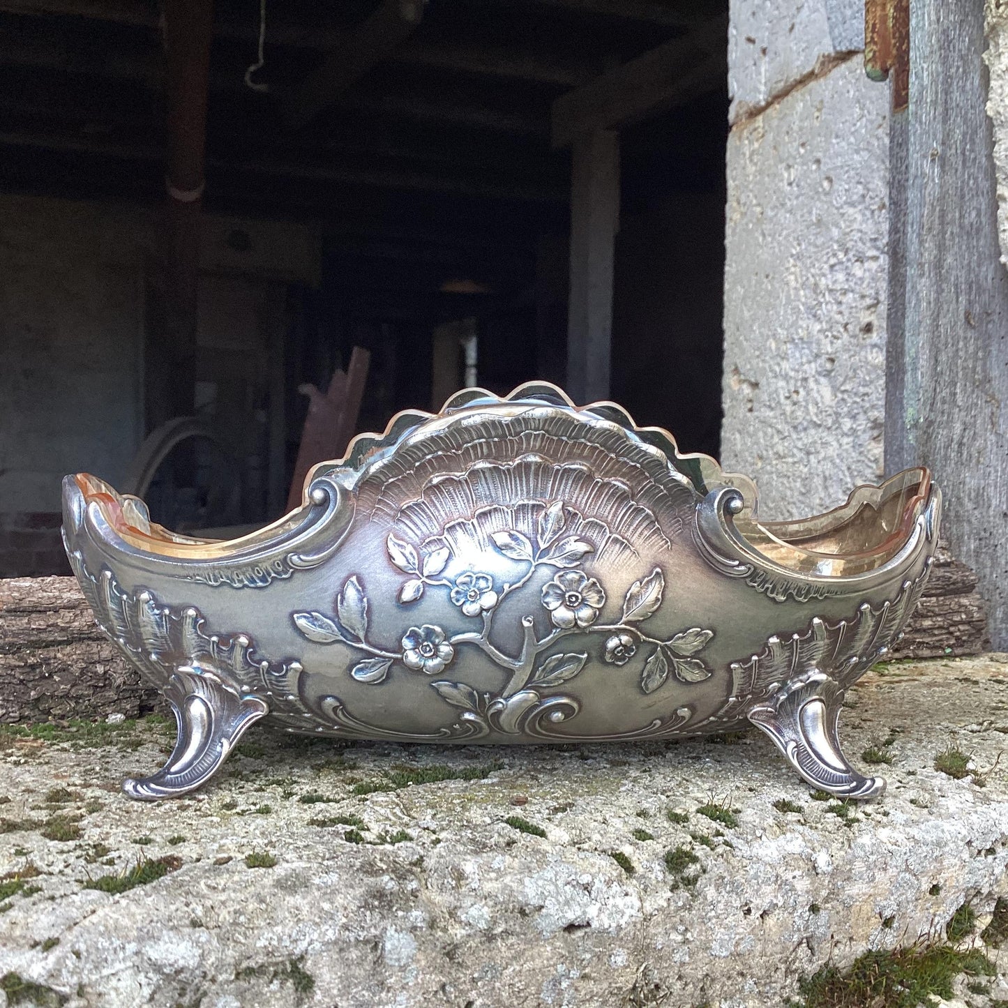 Add Silver metal planter complete with glass interior : a centerpiece to the cart