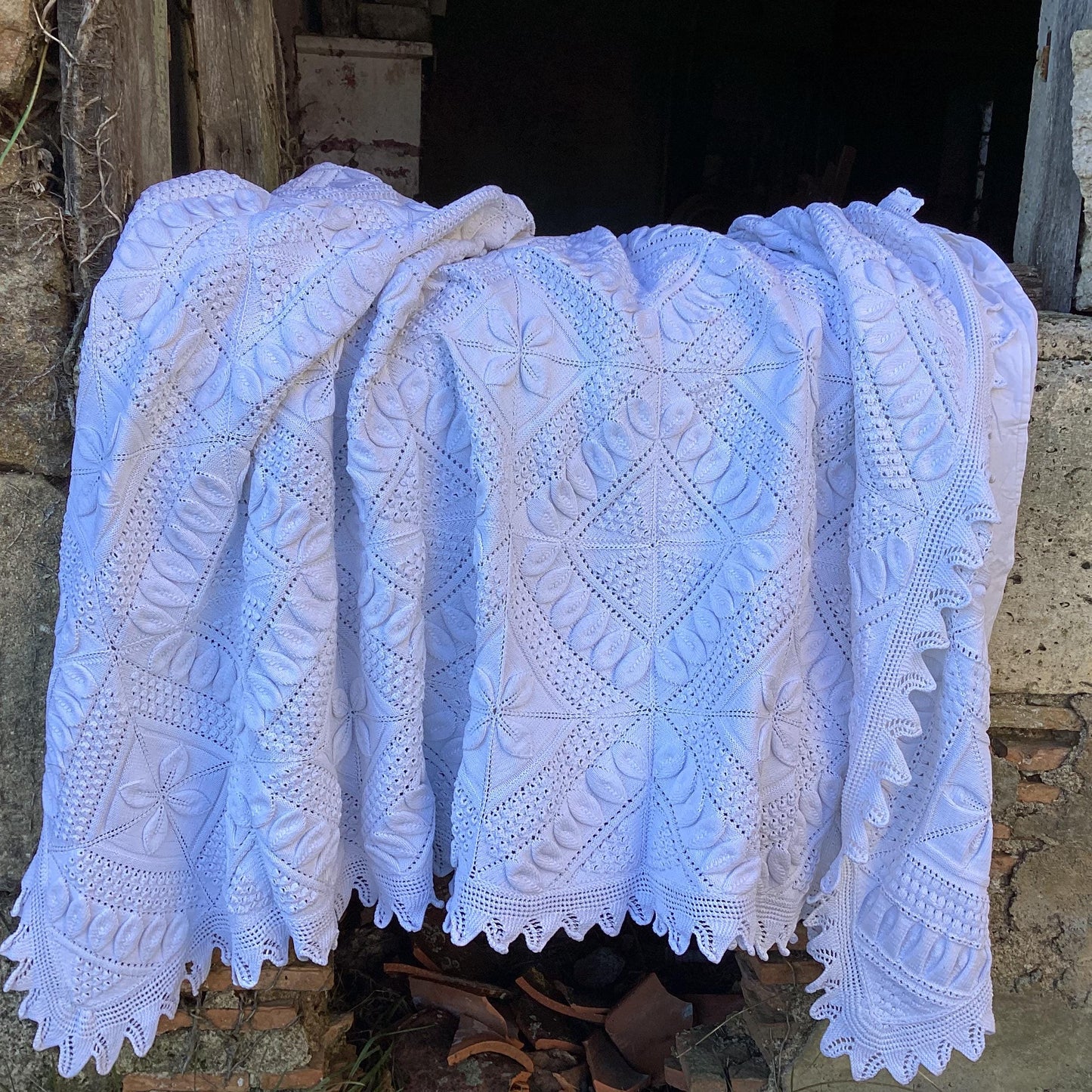 Add French Vintage Cotton Throw : handmade crochet bed cover, bed spread, comforter to the cart