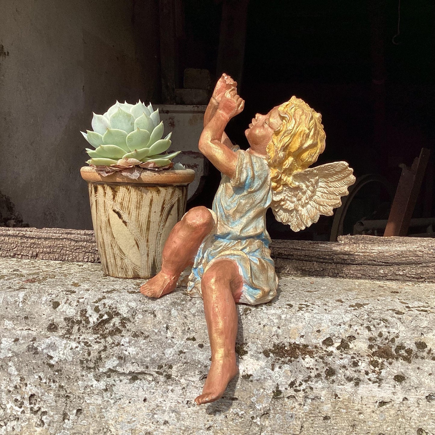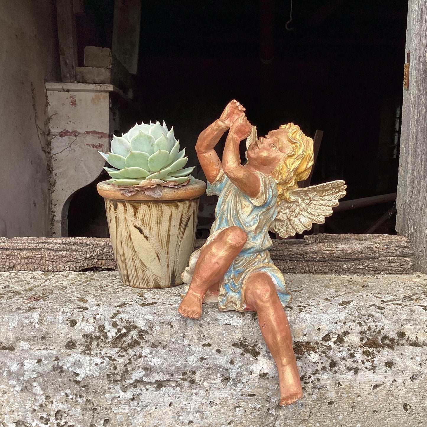 Add French vintage polychrome Angel shelf decor: gold winged romantic decor to the cart