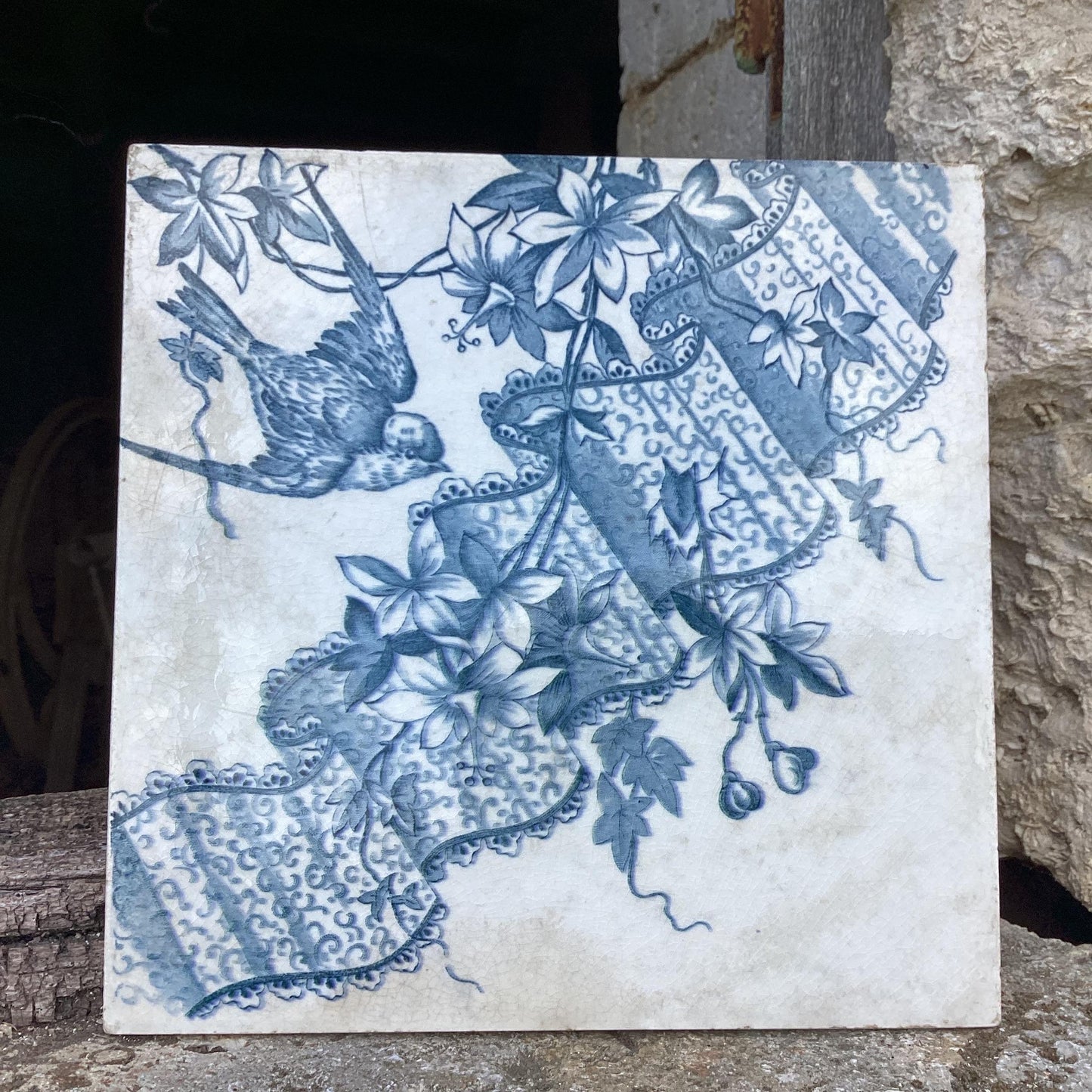 Add Vintage Longwy French tile: Bluebird and fuchsia design to the cart