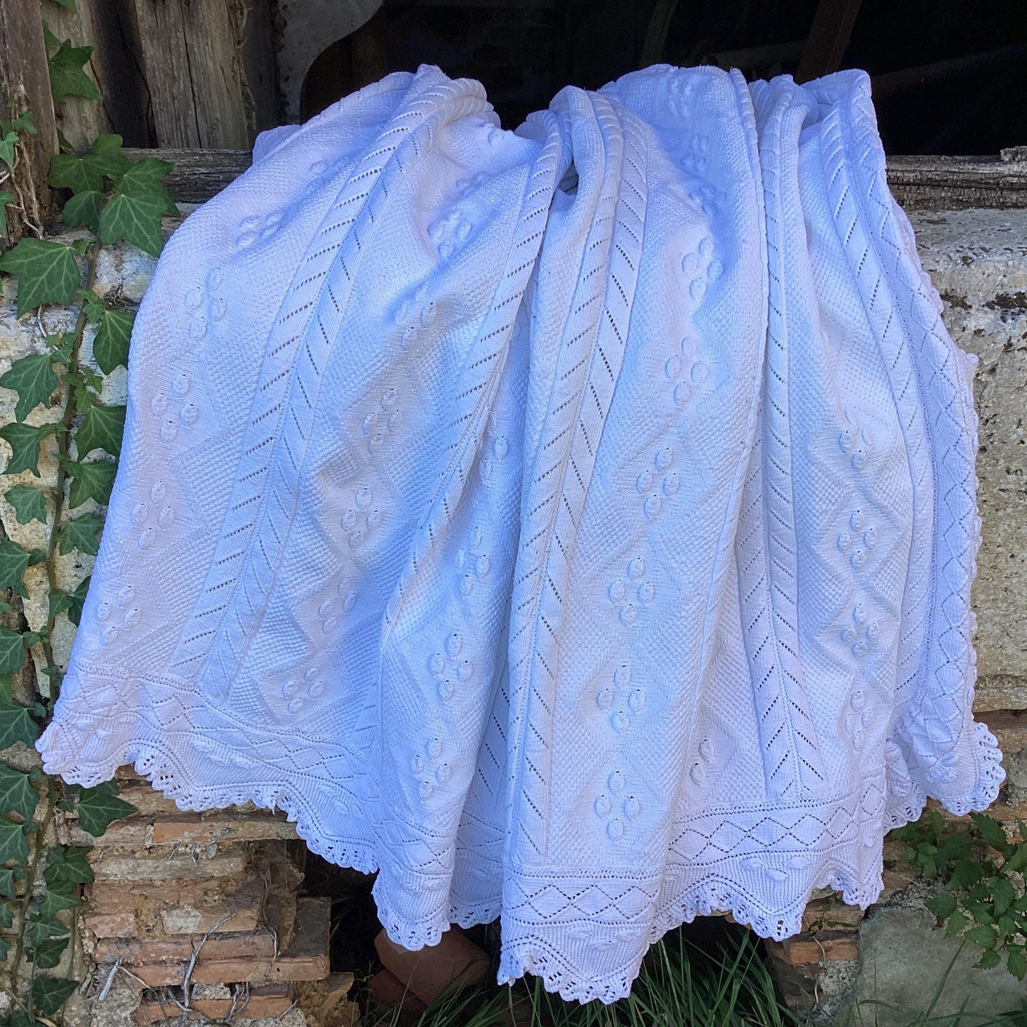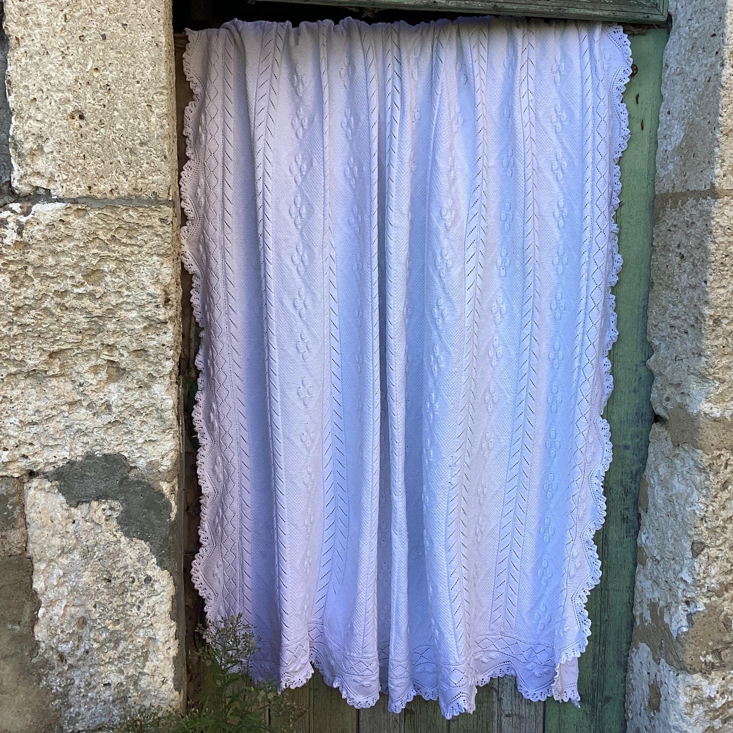 Add French vintage cotton bed cover : white throw, hand knitted bed spread to the cart