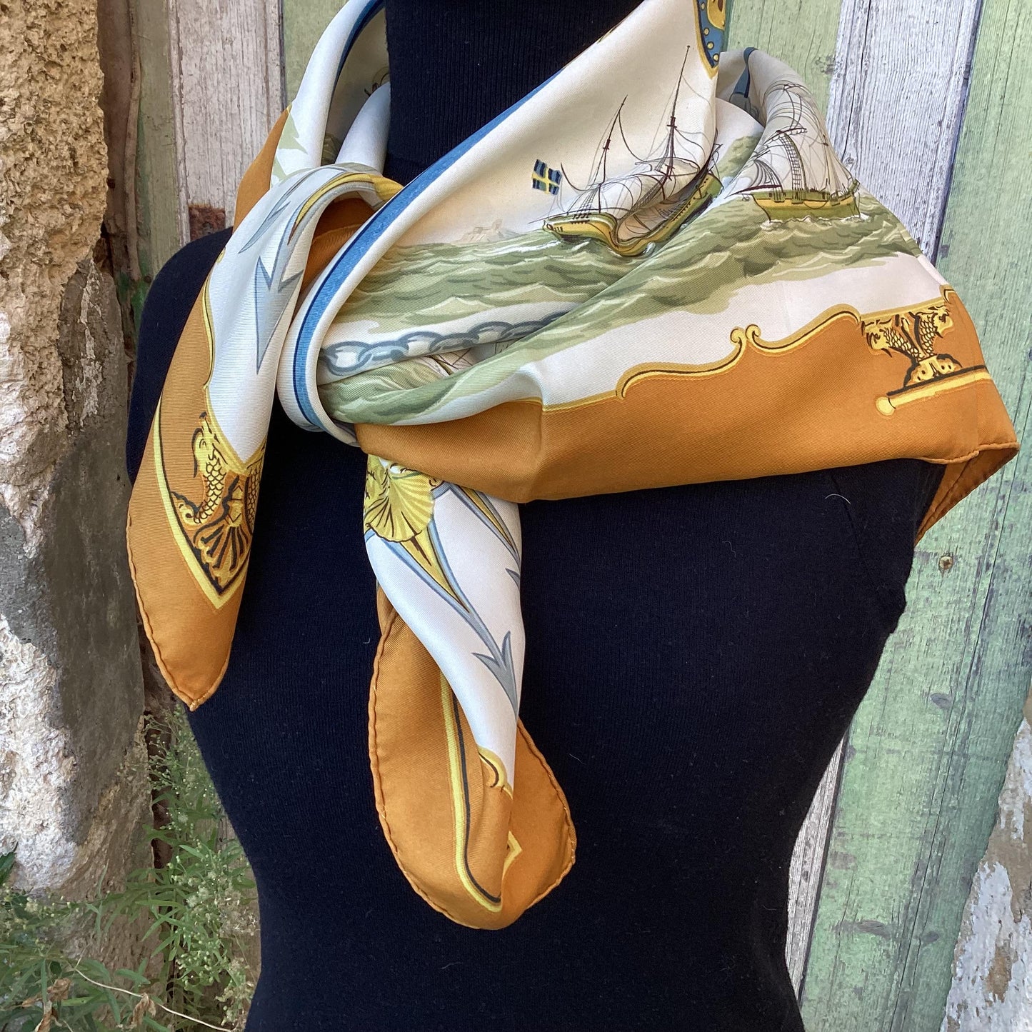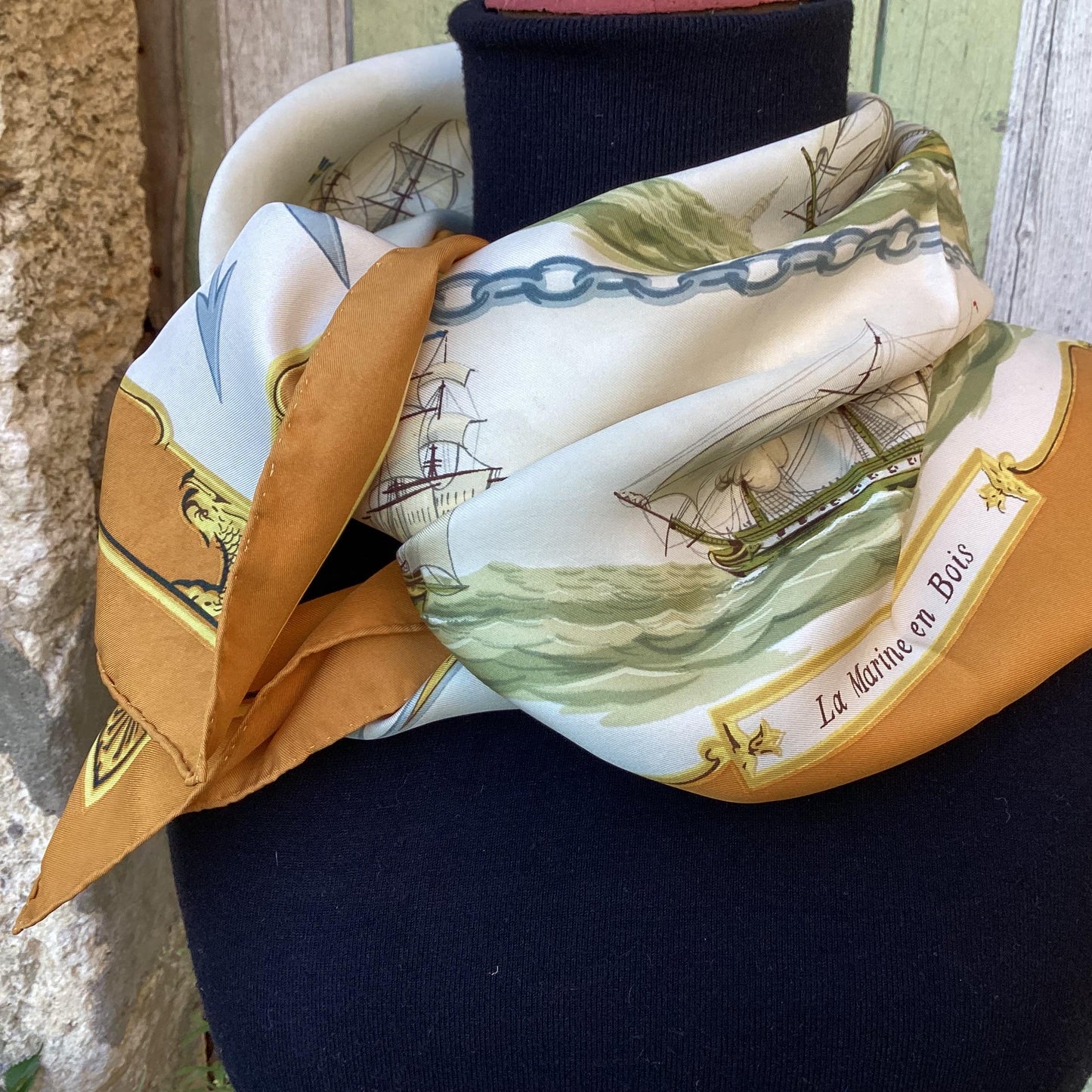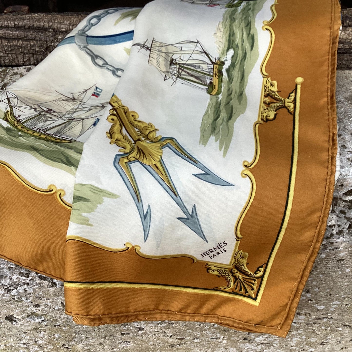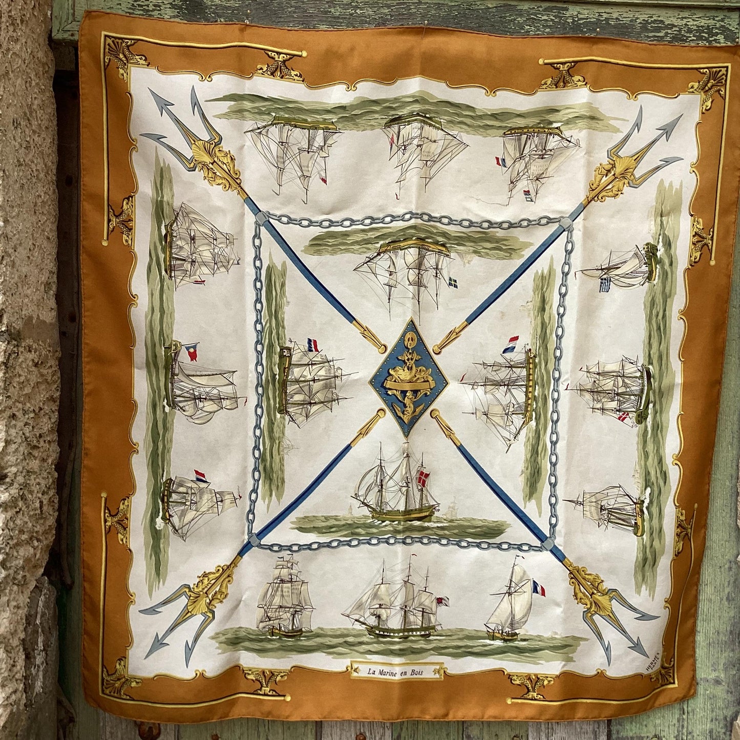 Hermès Silk Twill Scarf : ‘La Marine en Bois’ designed by Hugo Grygka, first edited 1958