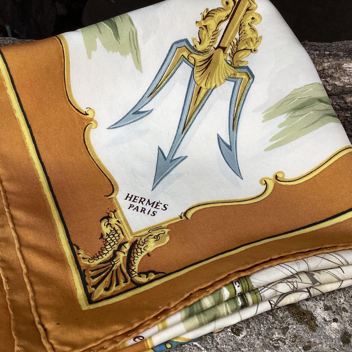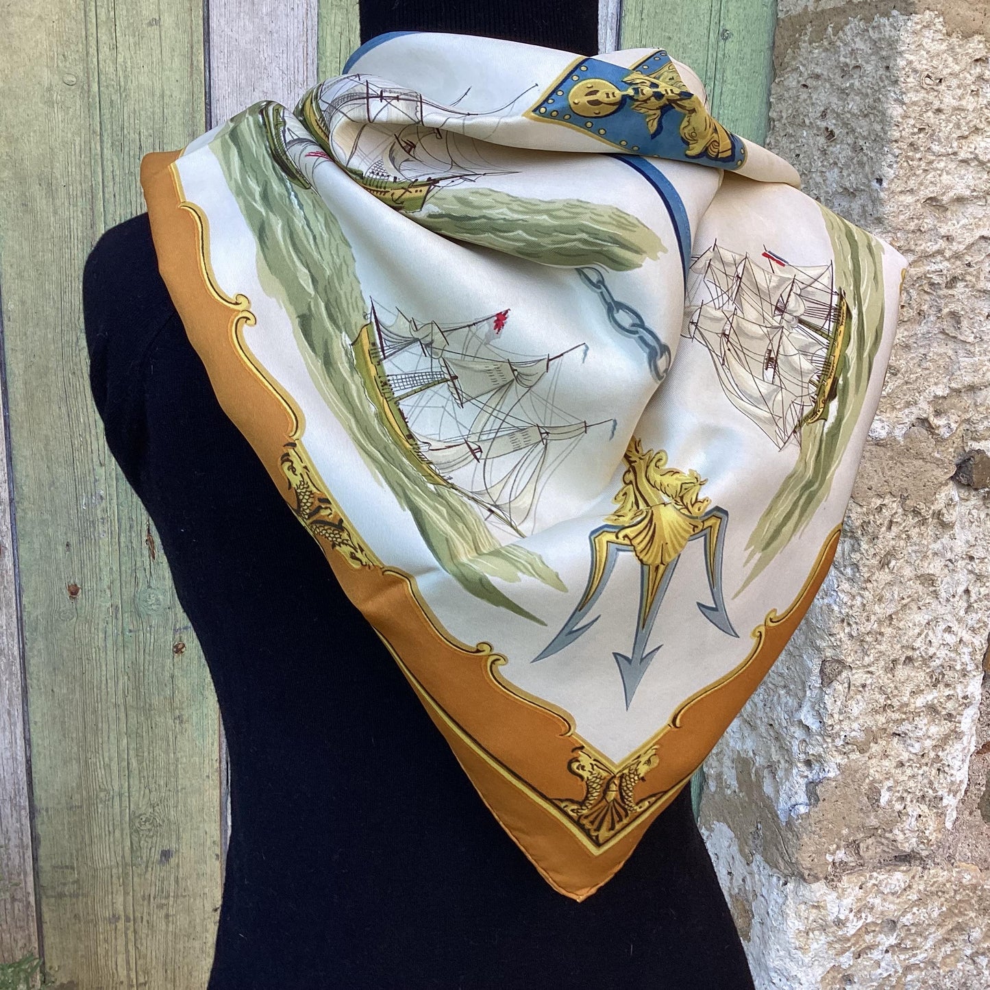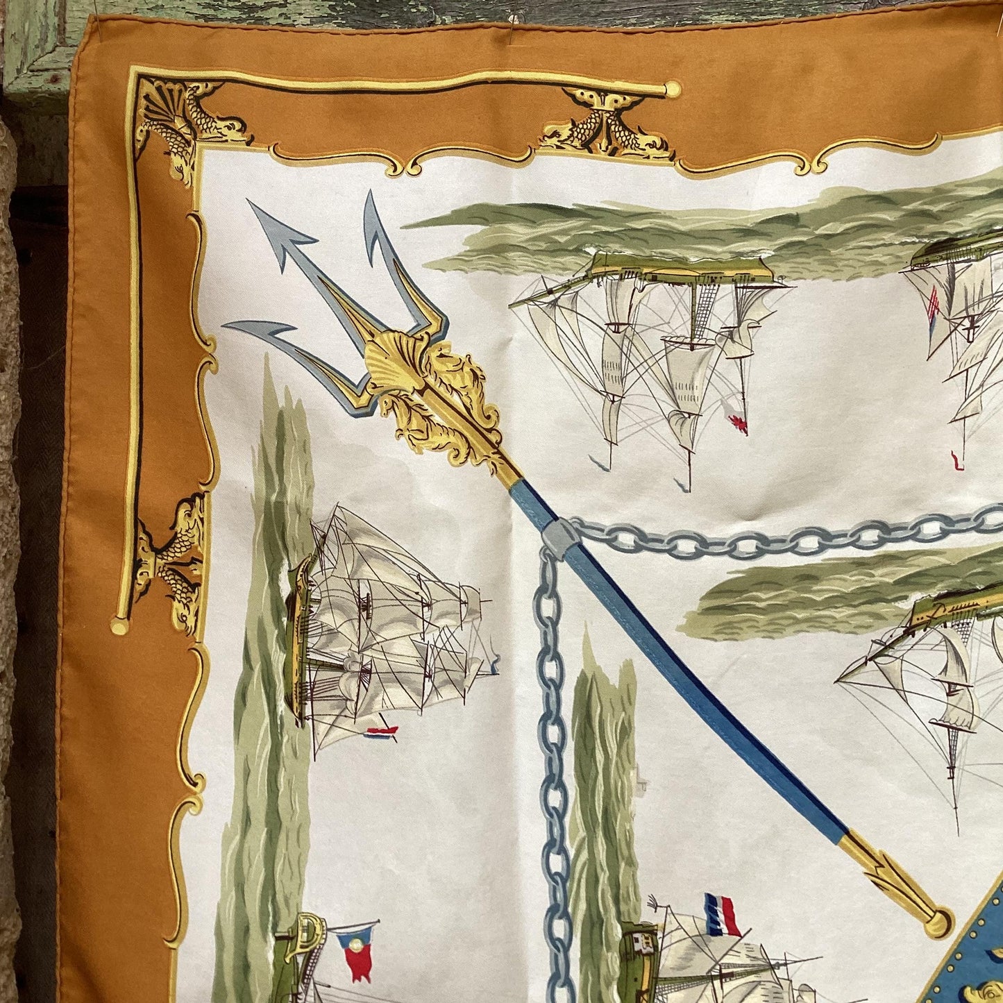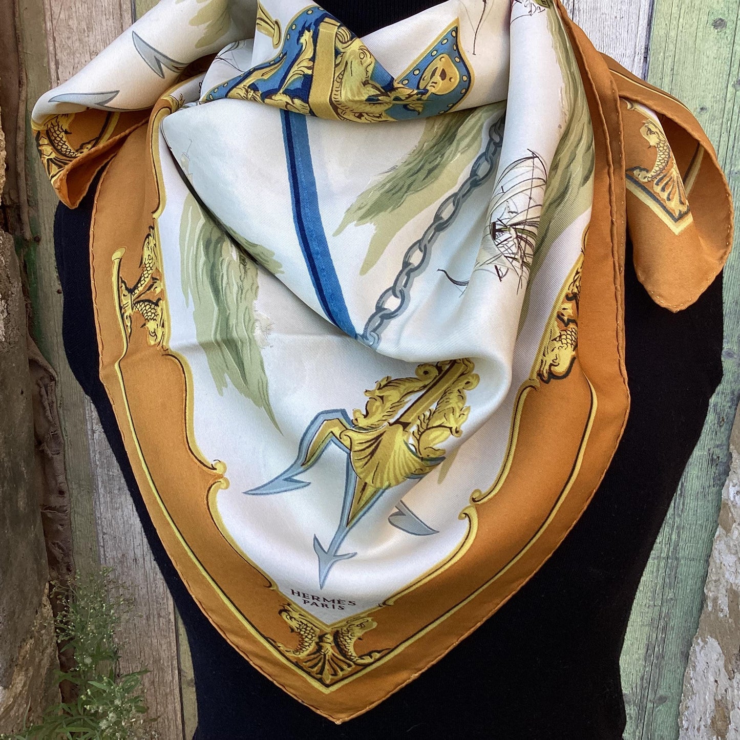 Hermès Silk Twill Scarf : ‘La Marine en Bois’ designed by Hugo Grygka, first edited 1958