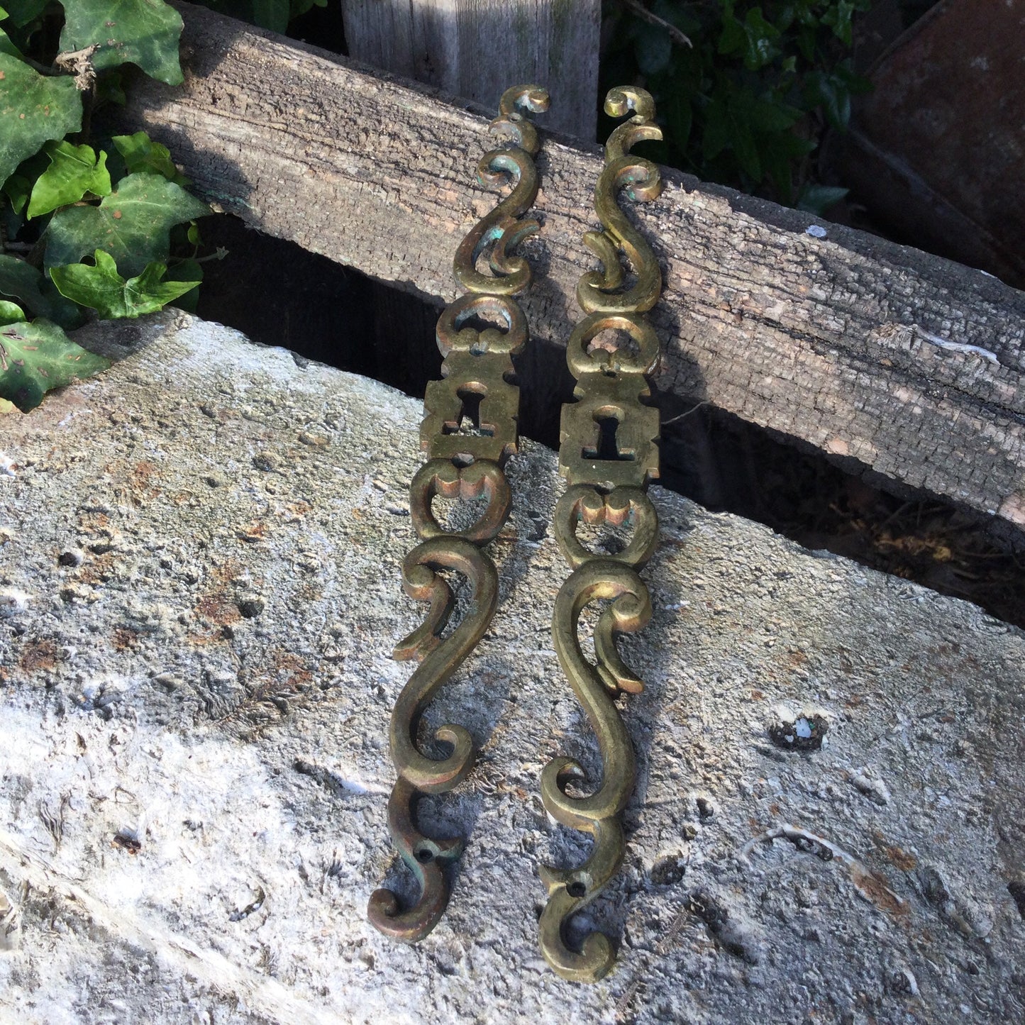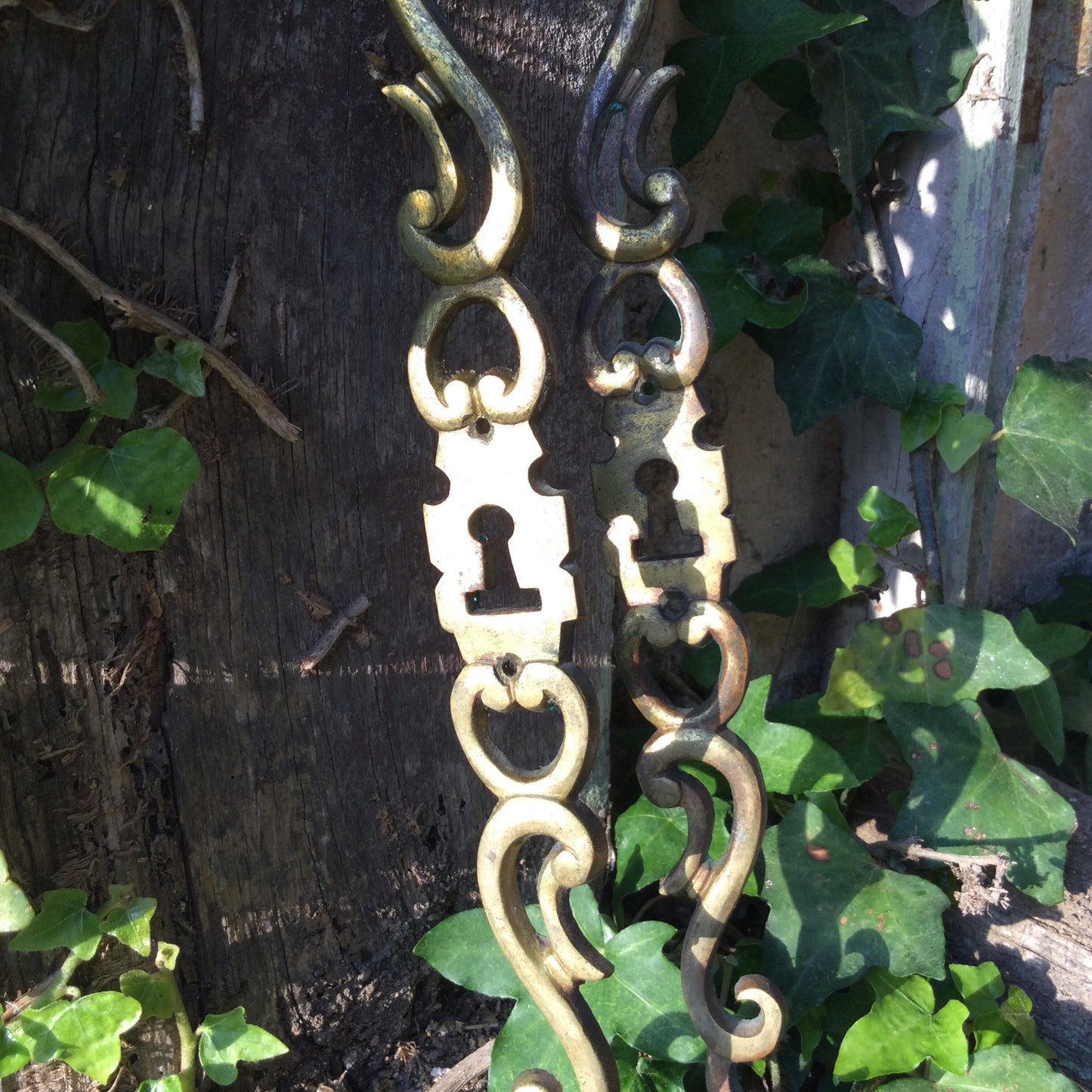 Add Pair Vintage Brass Keyhole Escutcheons - French Door Hardware, 12.5" to the cart