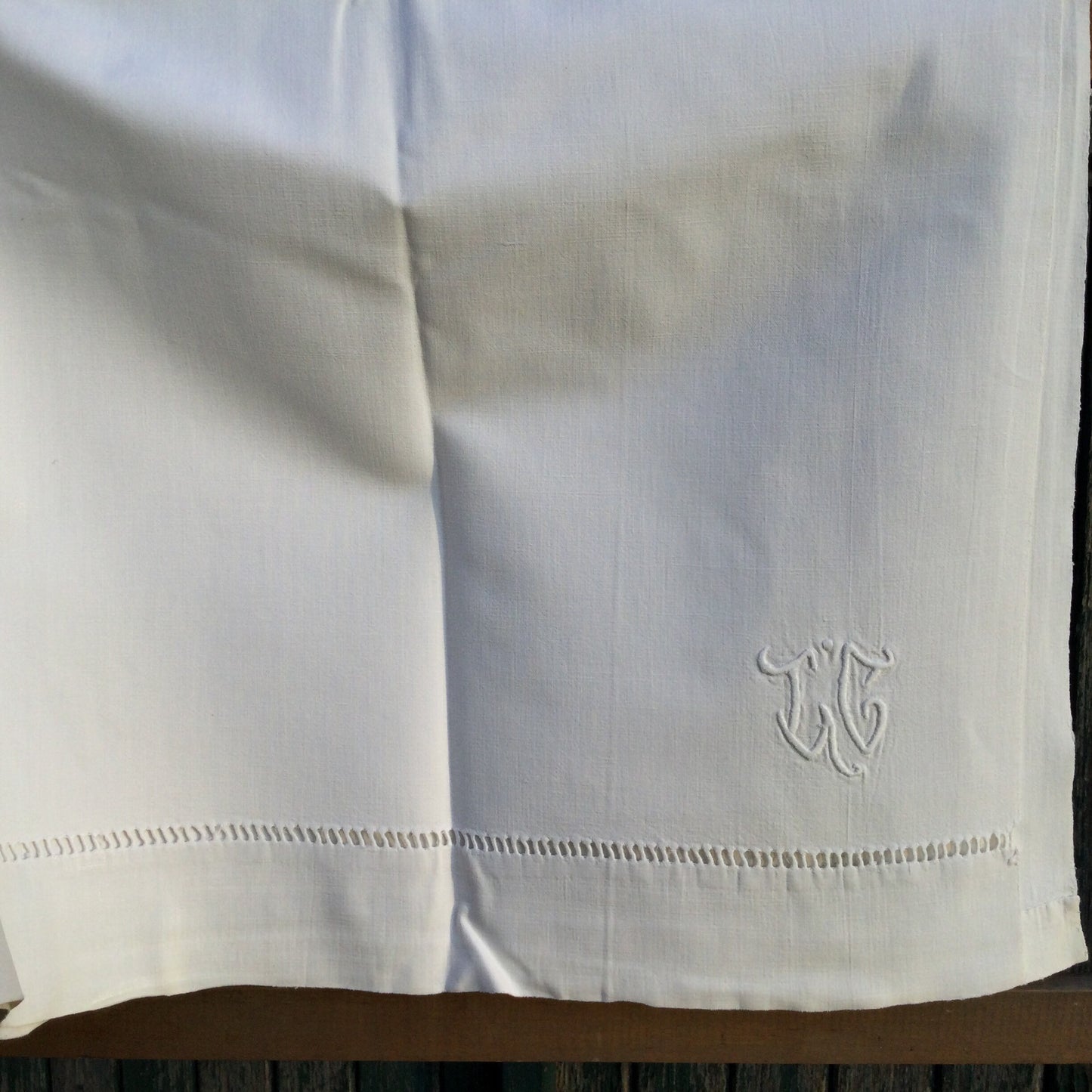 Add Antique Linen Metis Flat Sheet, Embroidered Monogram (GC), Sewing Fabric to the cart