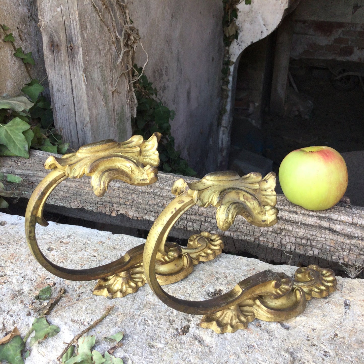 Add Vintage French Brass Curtain Tiebacks, Window Hardware (Set of 2) to the cart