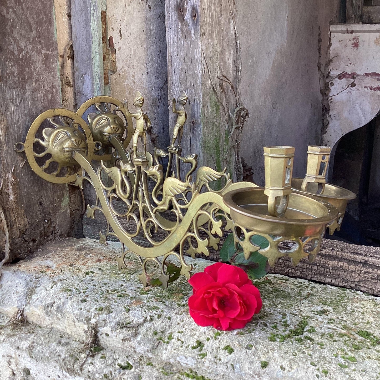 Add Antique Bronze Candleholders: 1800s Chateau Salvage, French Decor to the cart