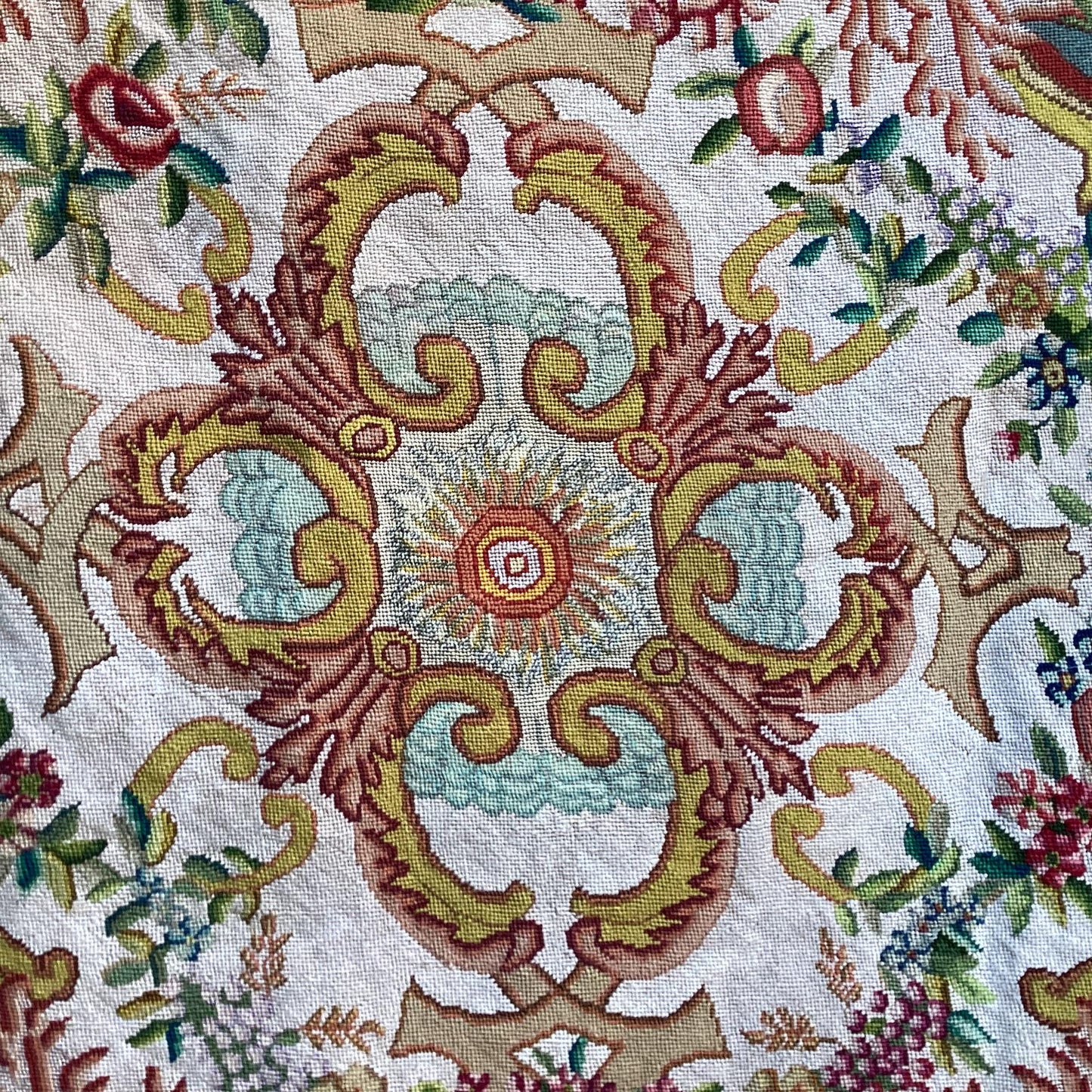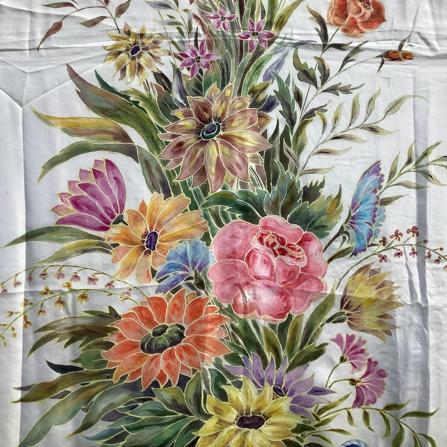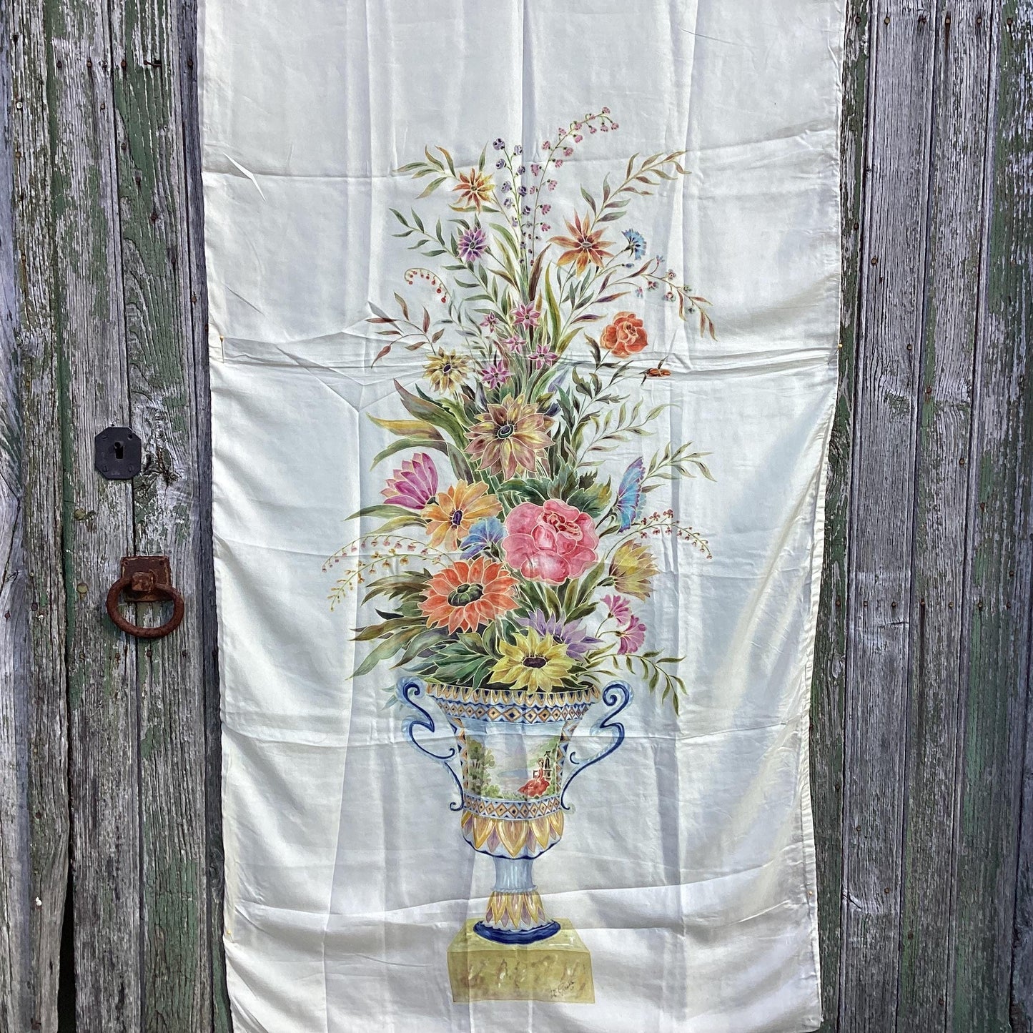 Add 1950s Hand-Painted Silk Curtain: Vintage Floral Bouquet, Chateau Salvage Fabric to the cart
