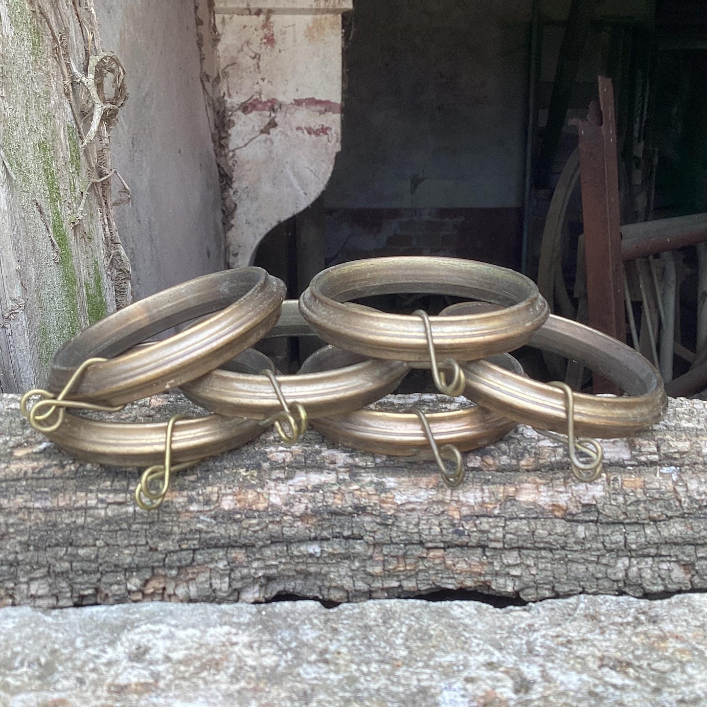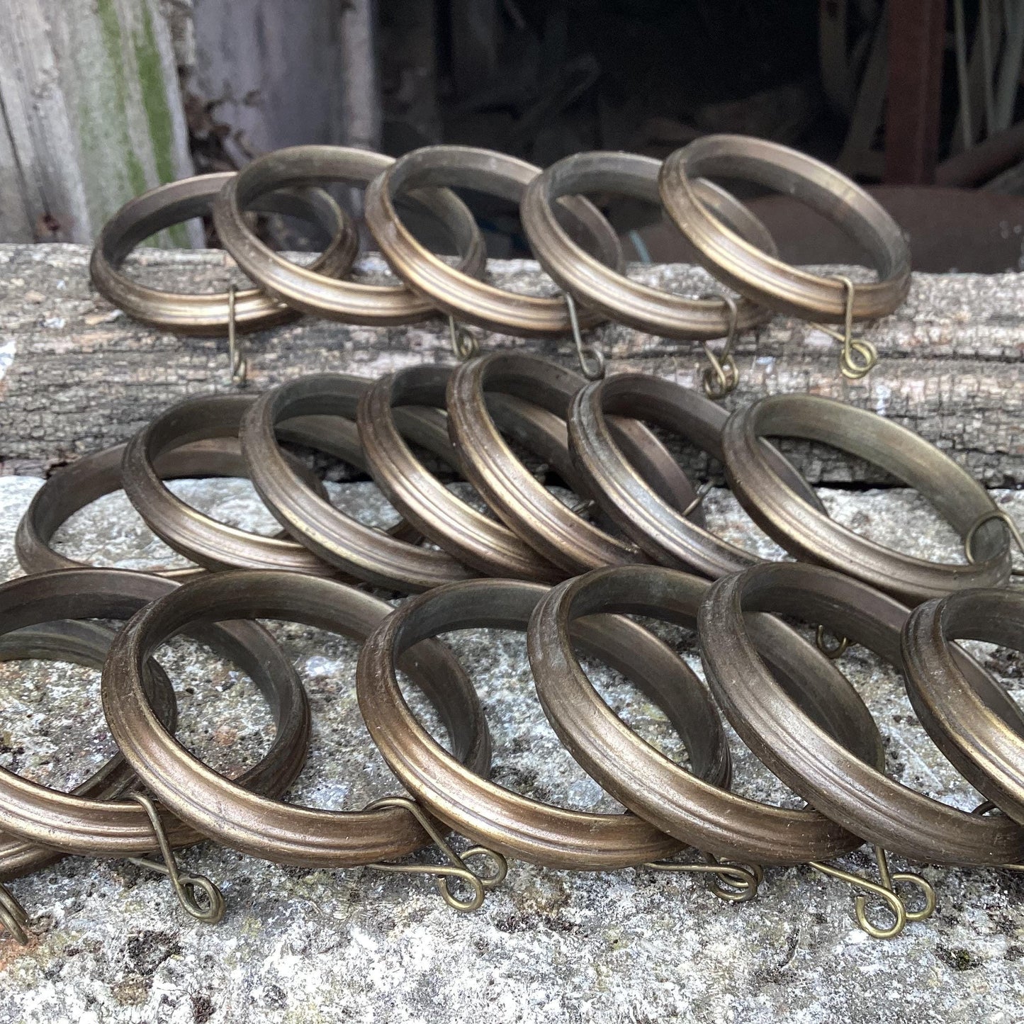 19 Salvaged Bronze Curtain Rings, Chateau Window Decor