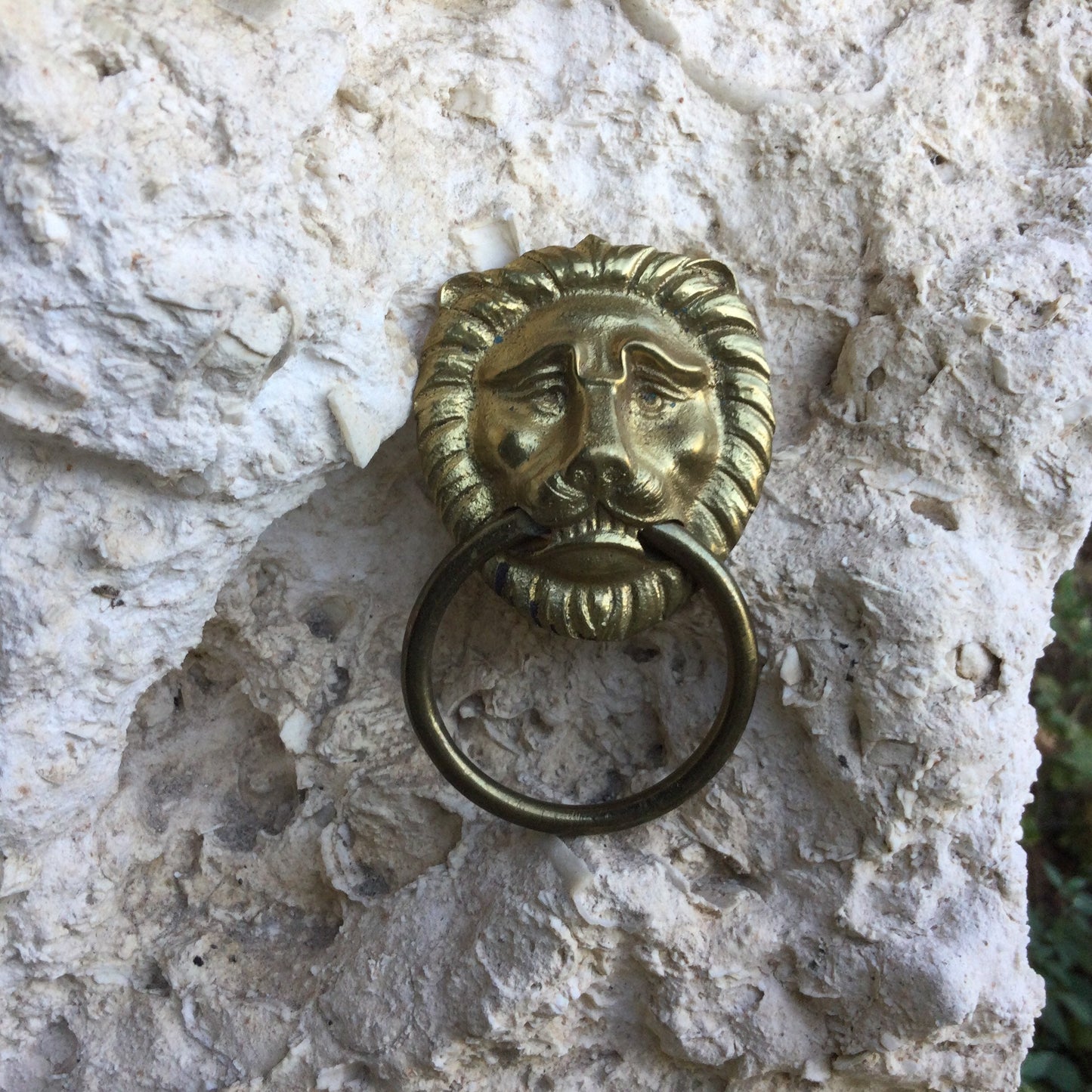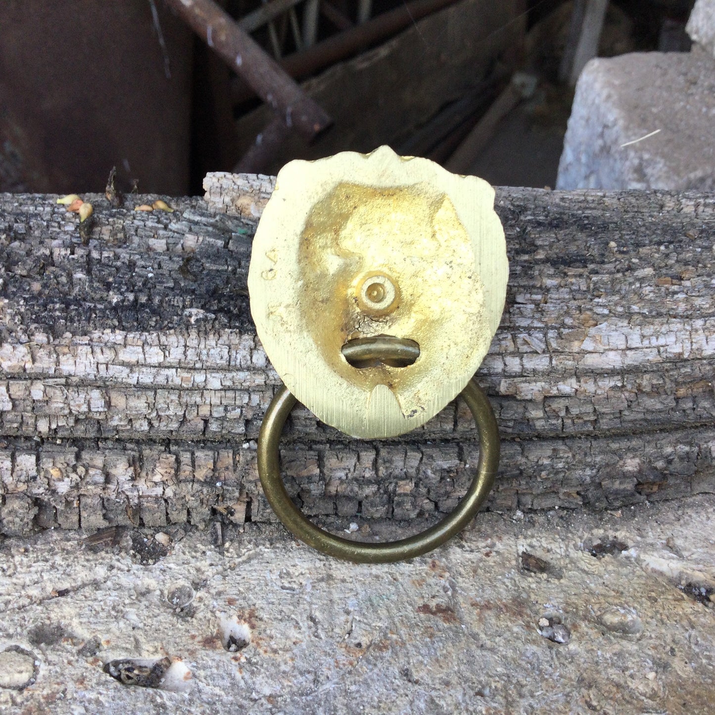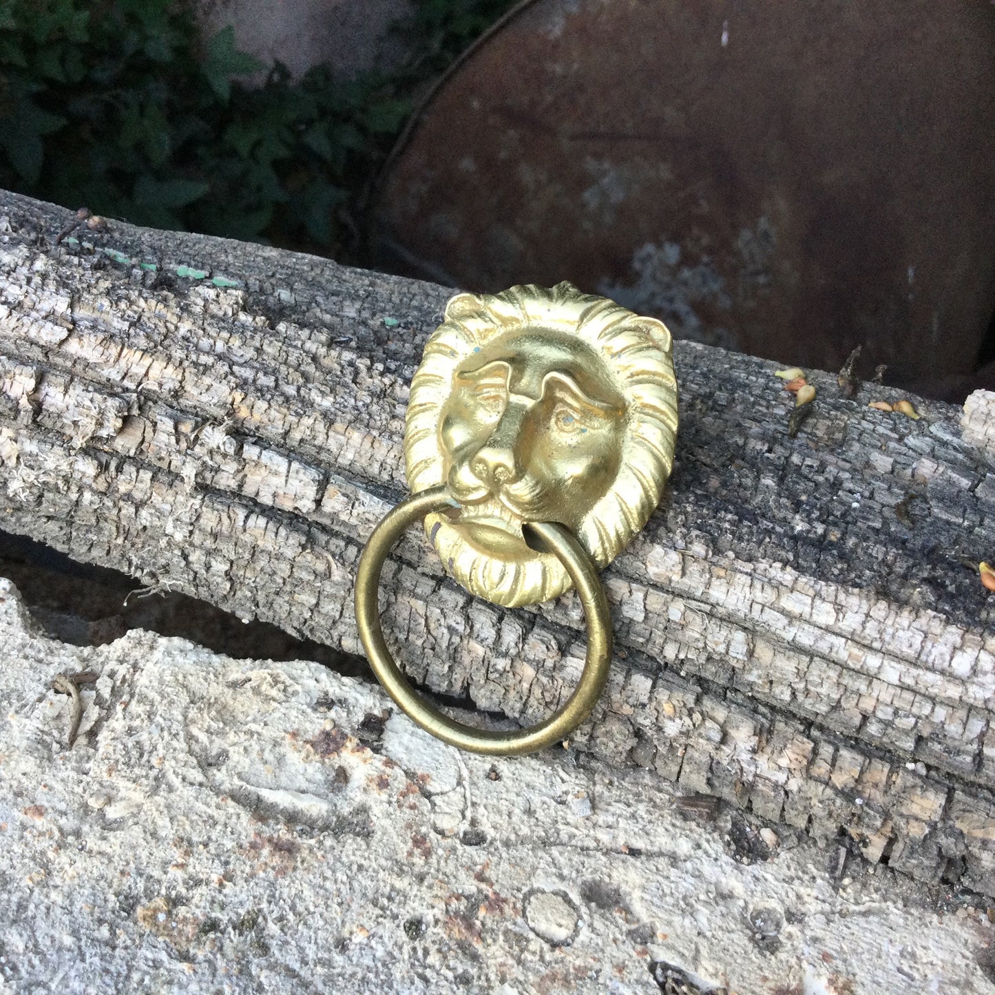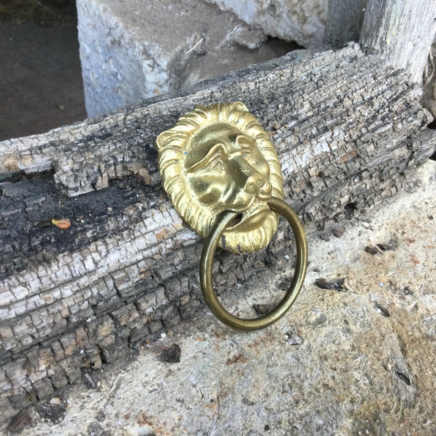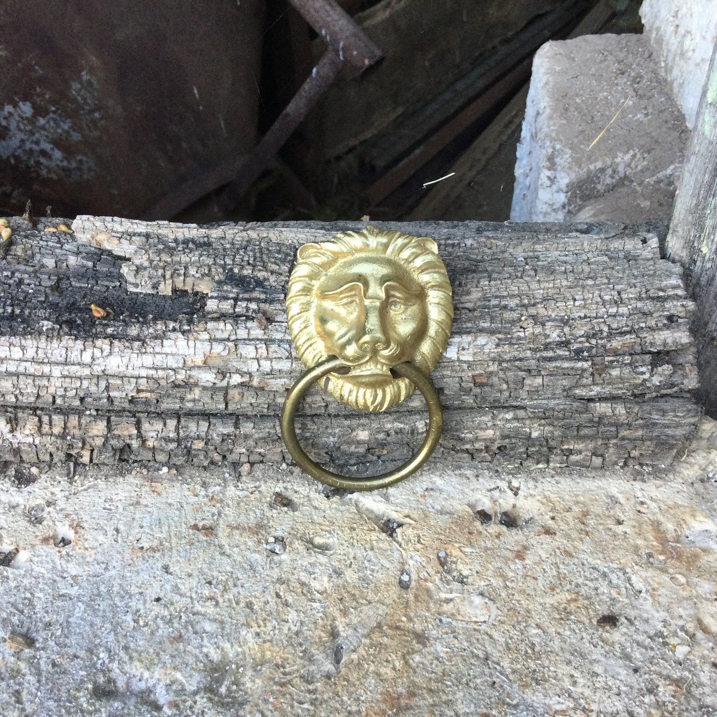 Bronze Lion Head Drawer Pull - Gold Finish, Salvaged Hardware
