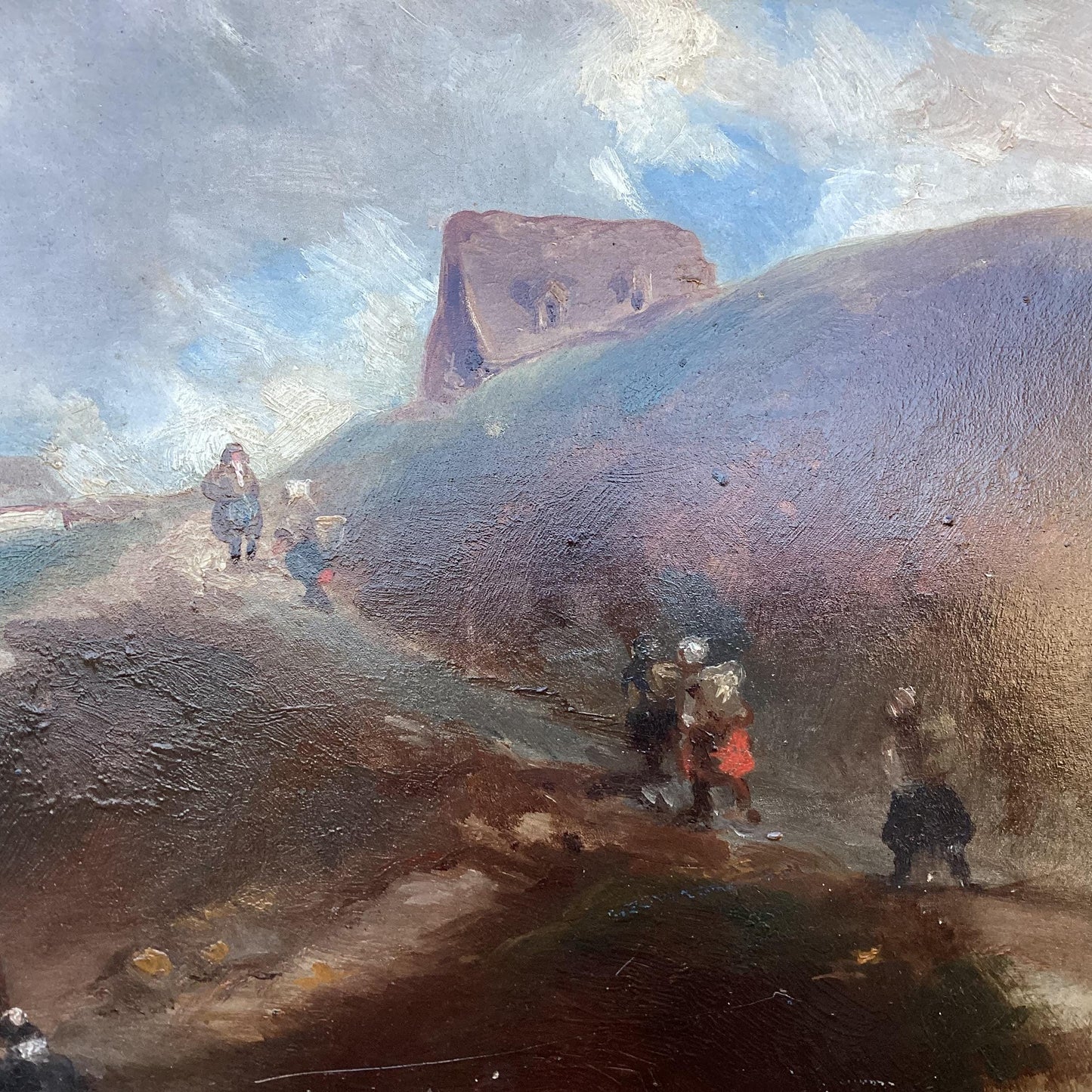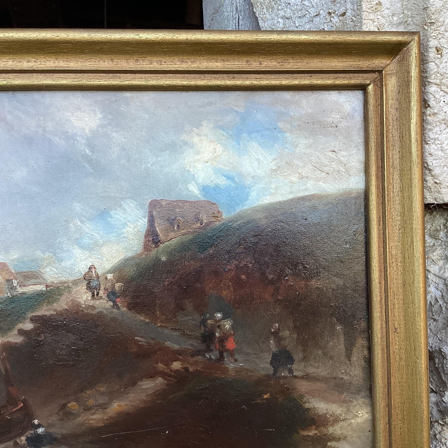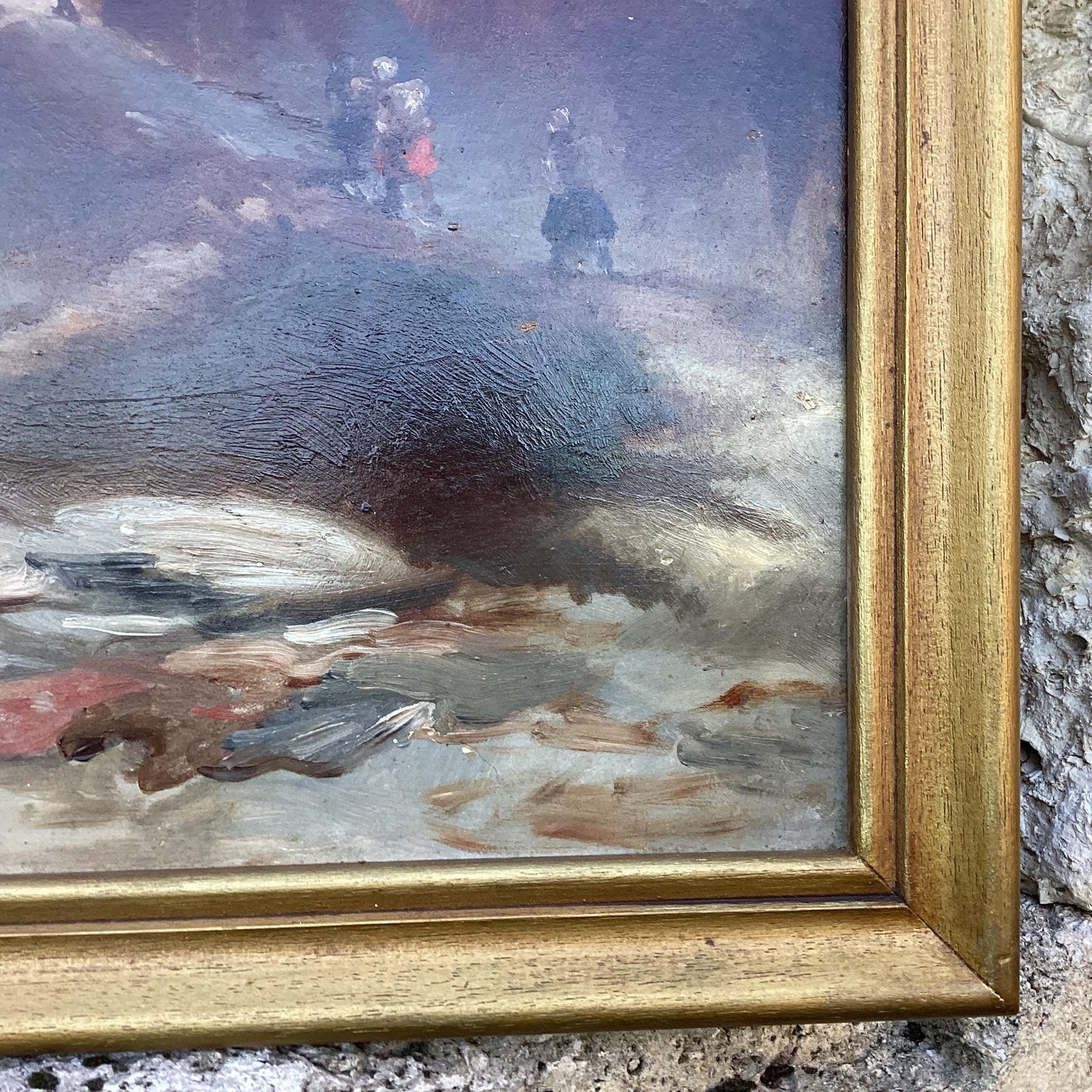 Vintage Maritime Oil Painting, Animated Sea Bathing Scene, Framed