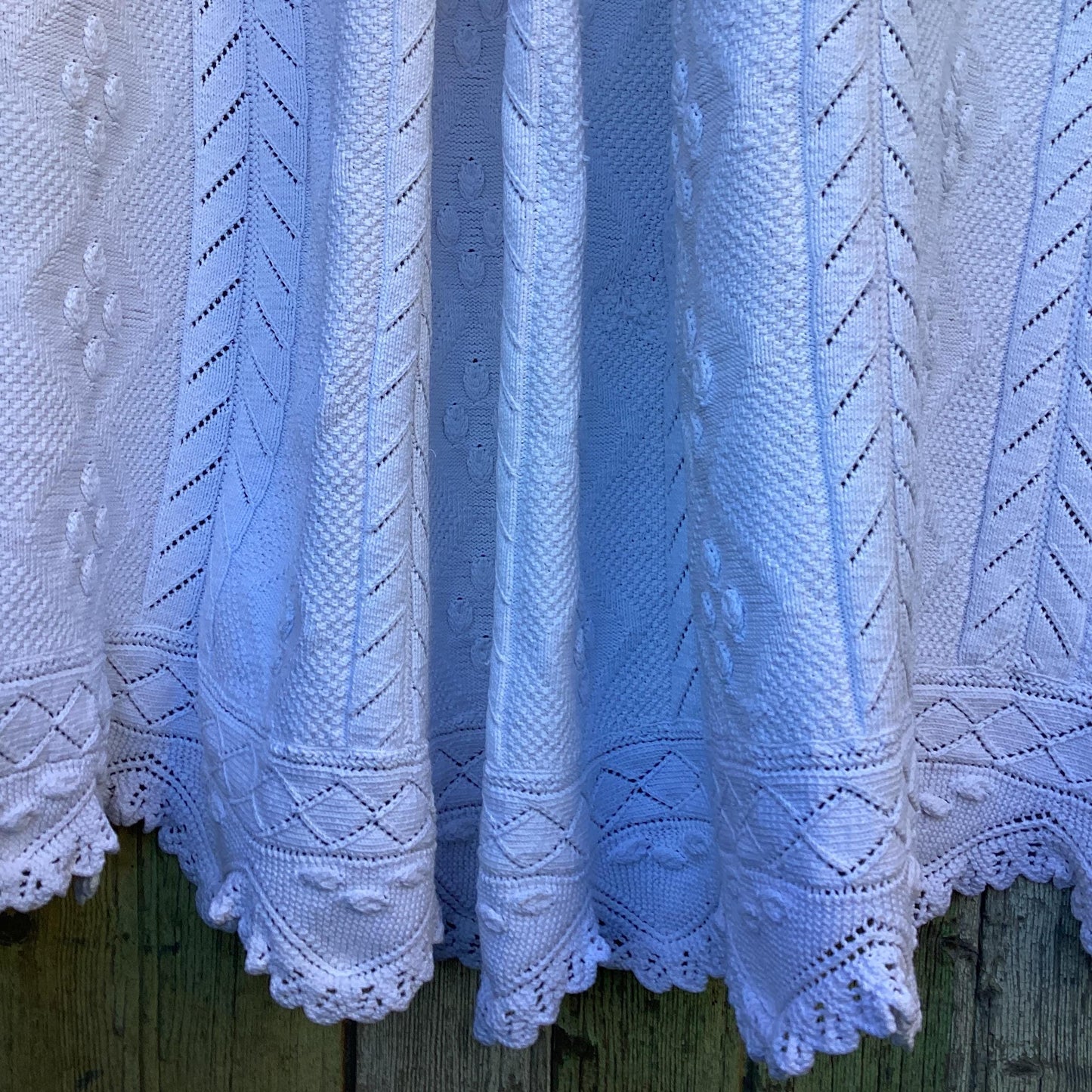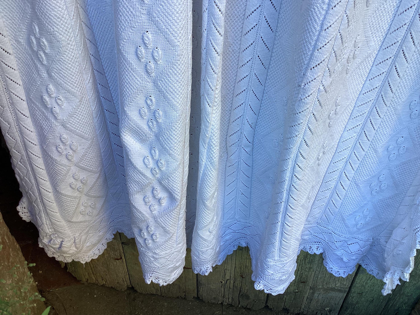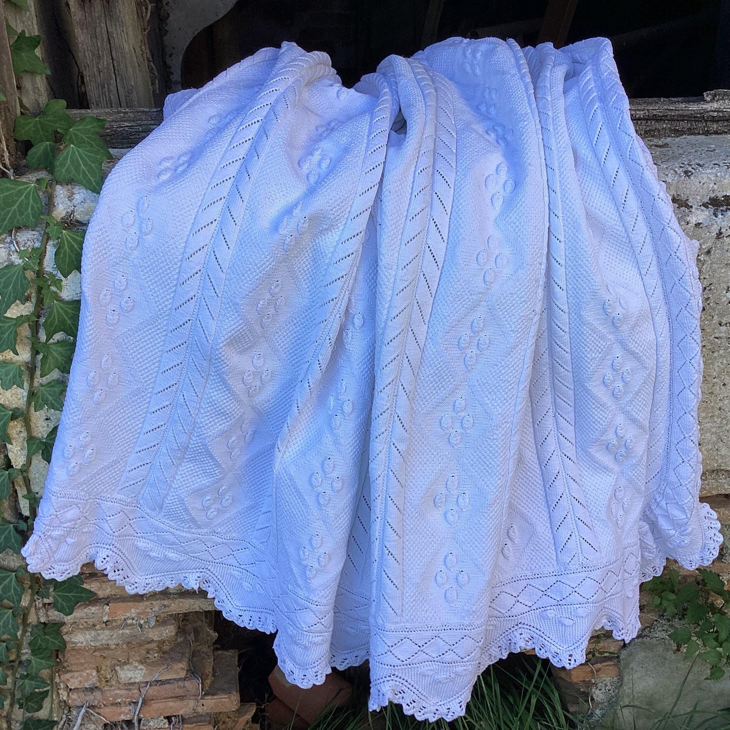 French vintage cotton bed cover : white throw, hand knitted bed spread