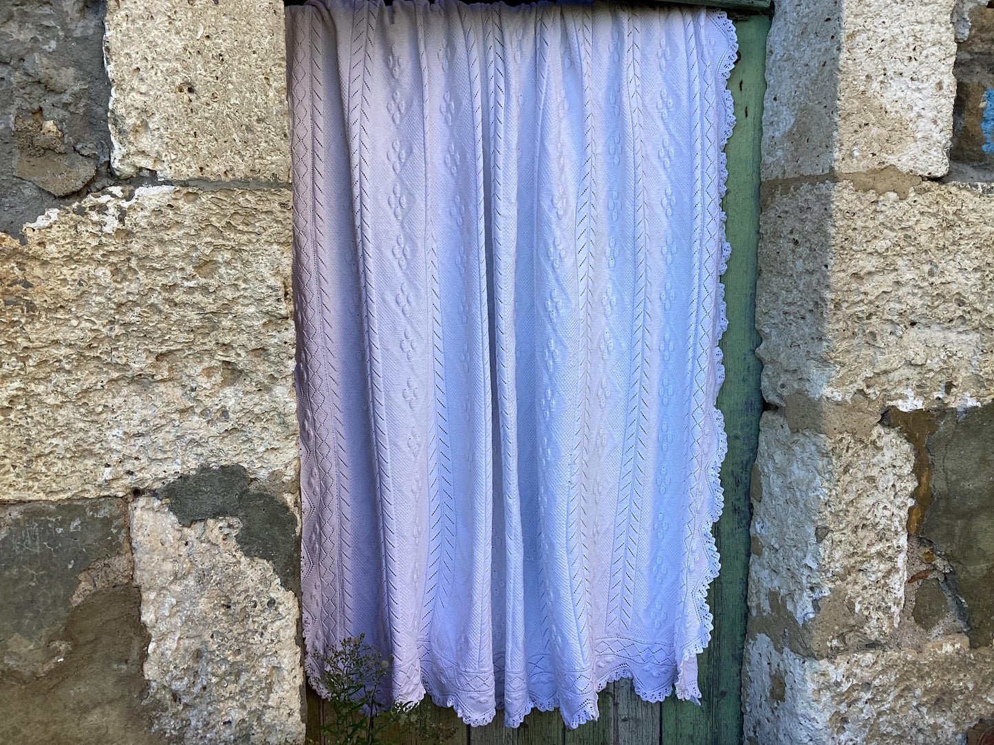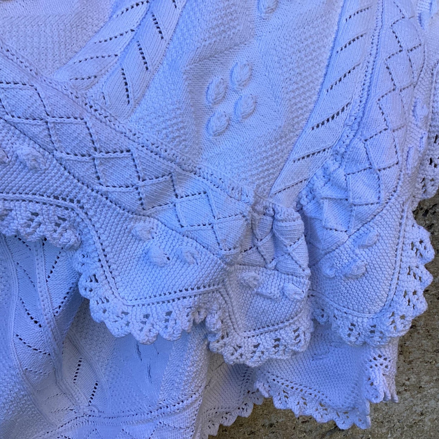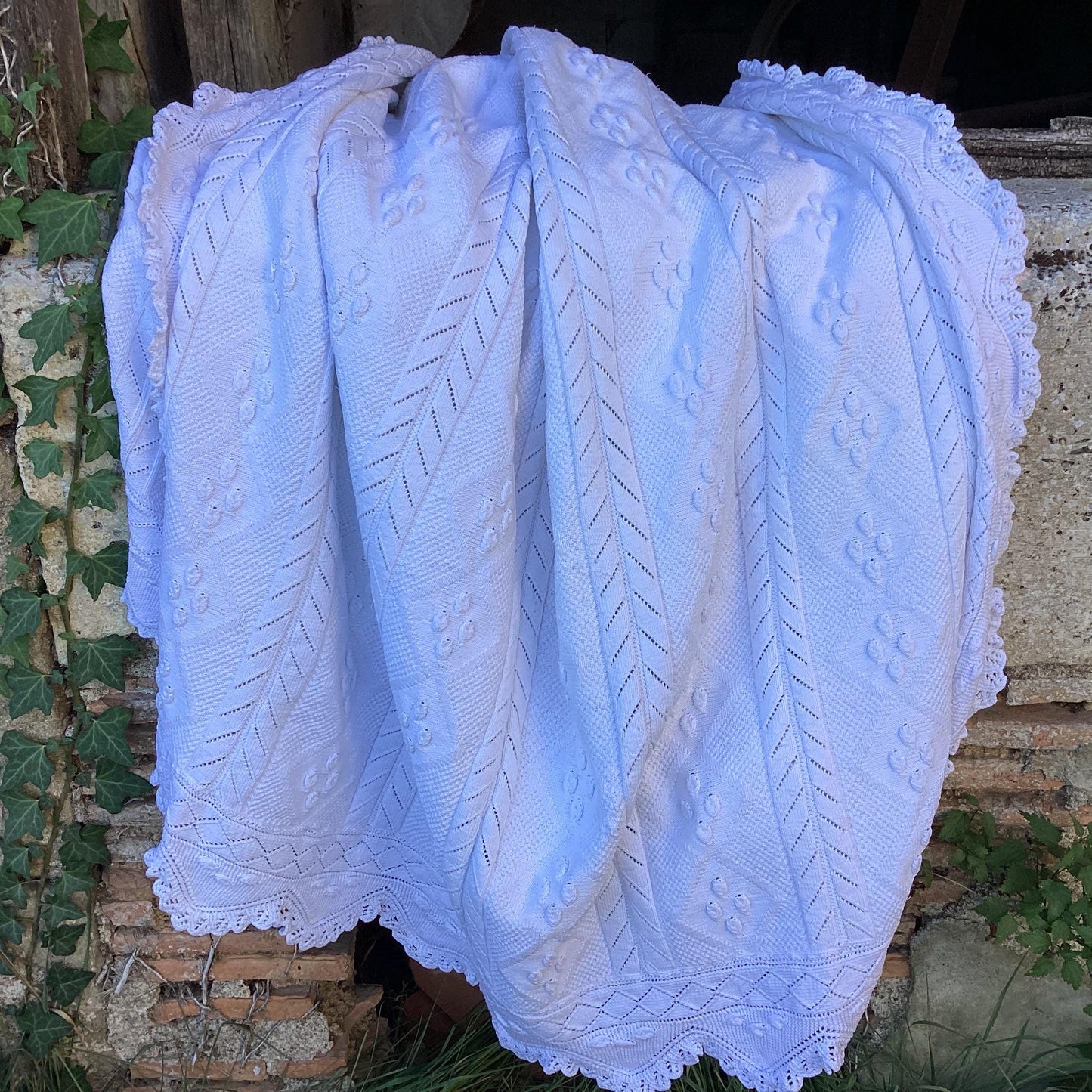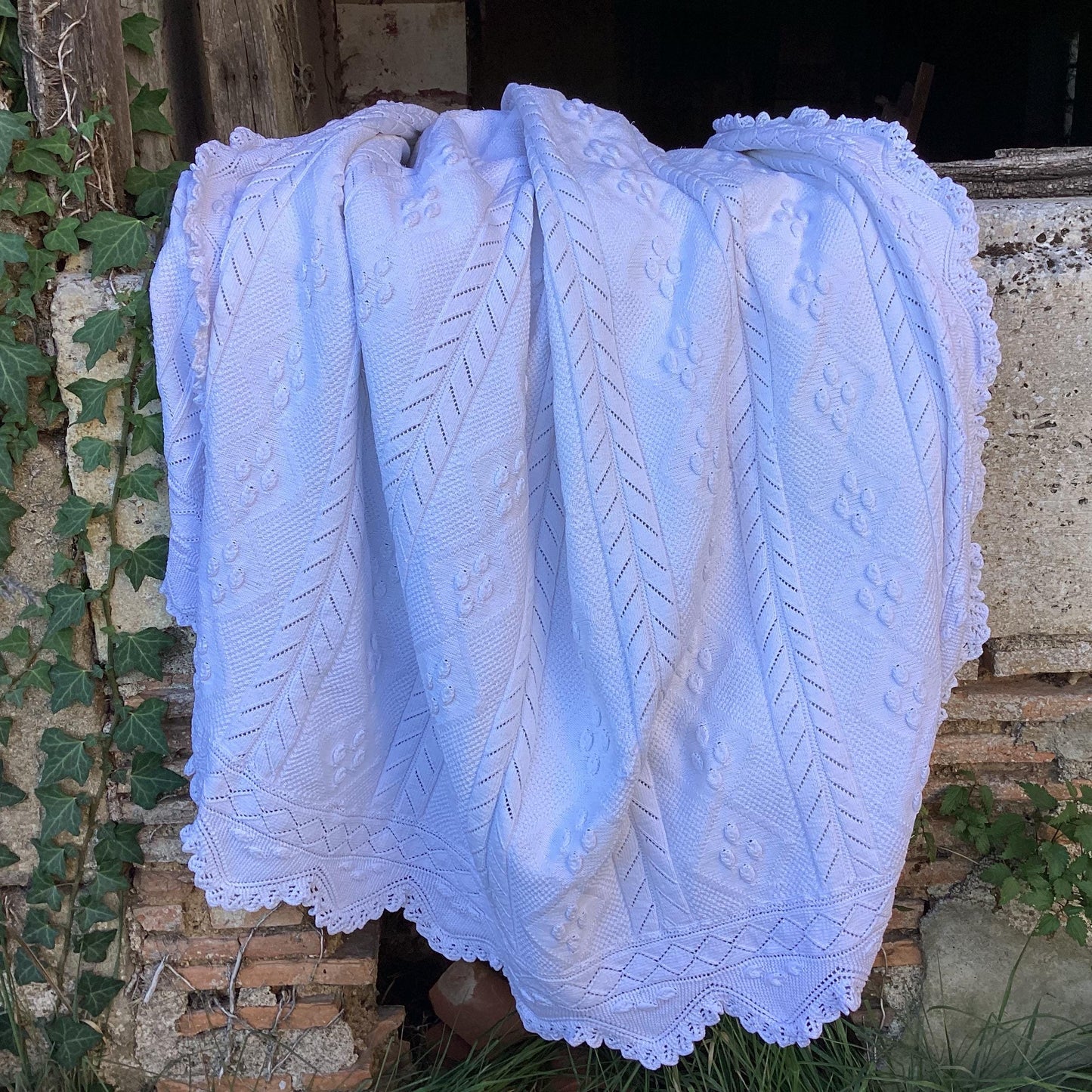 French vintage cotton bed cover : white throw, hand knitted bed spread